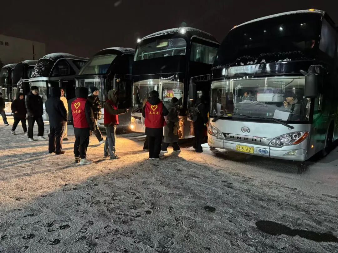 风雪无阻,通勤车“温暖摆渡”。清晨5点50,能源中心安排的二十四辆研考护航专线直达通勤已早早发动引擎,驾驶员师傅呵着白气说,“天冷路滑,学校要求早早到位,确保免费接送车辆安全准点护送同学们考试。”在集中候车点,学生处、招办的老师和志愿者们不断提醒着“小心路滑”“注意脚下”。