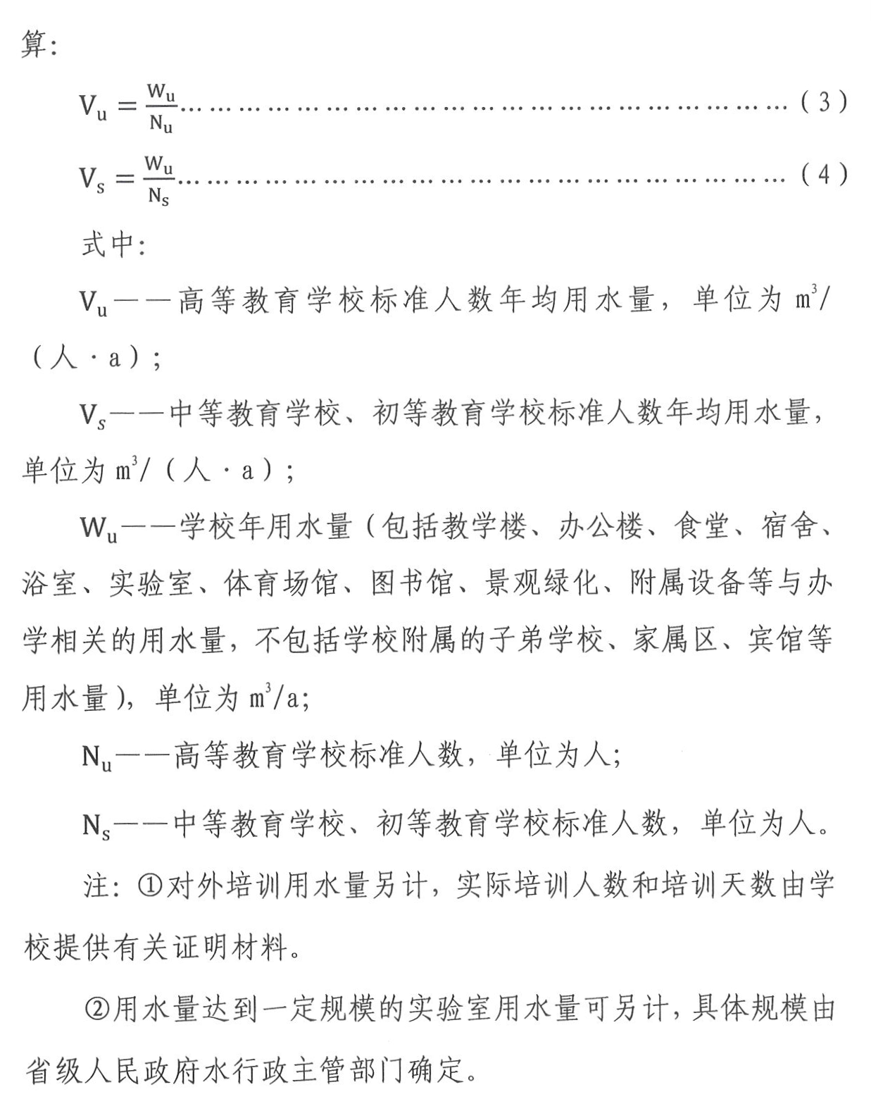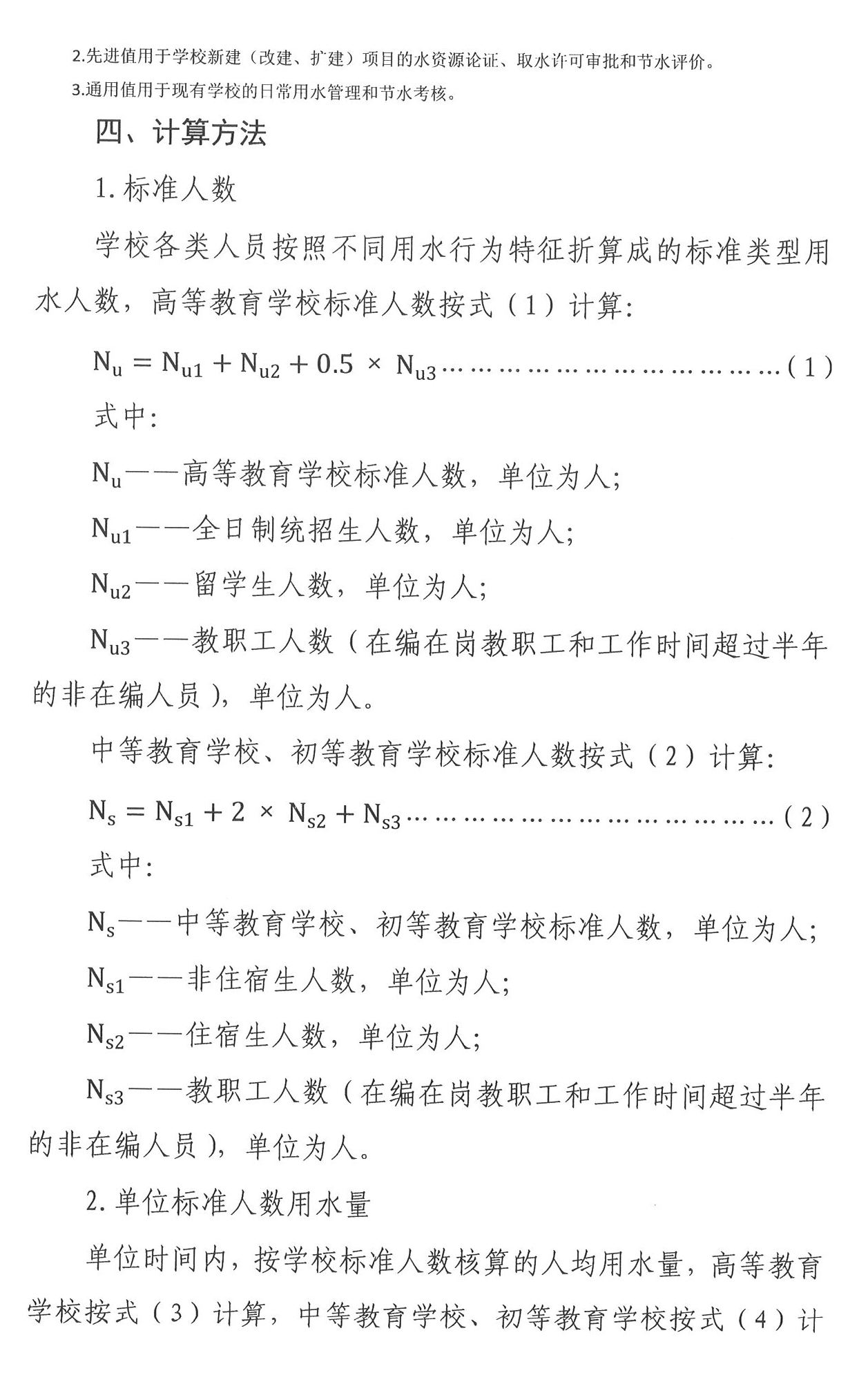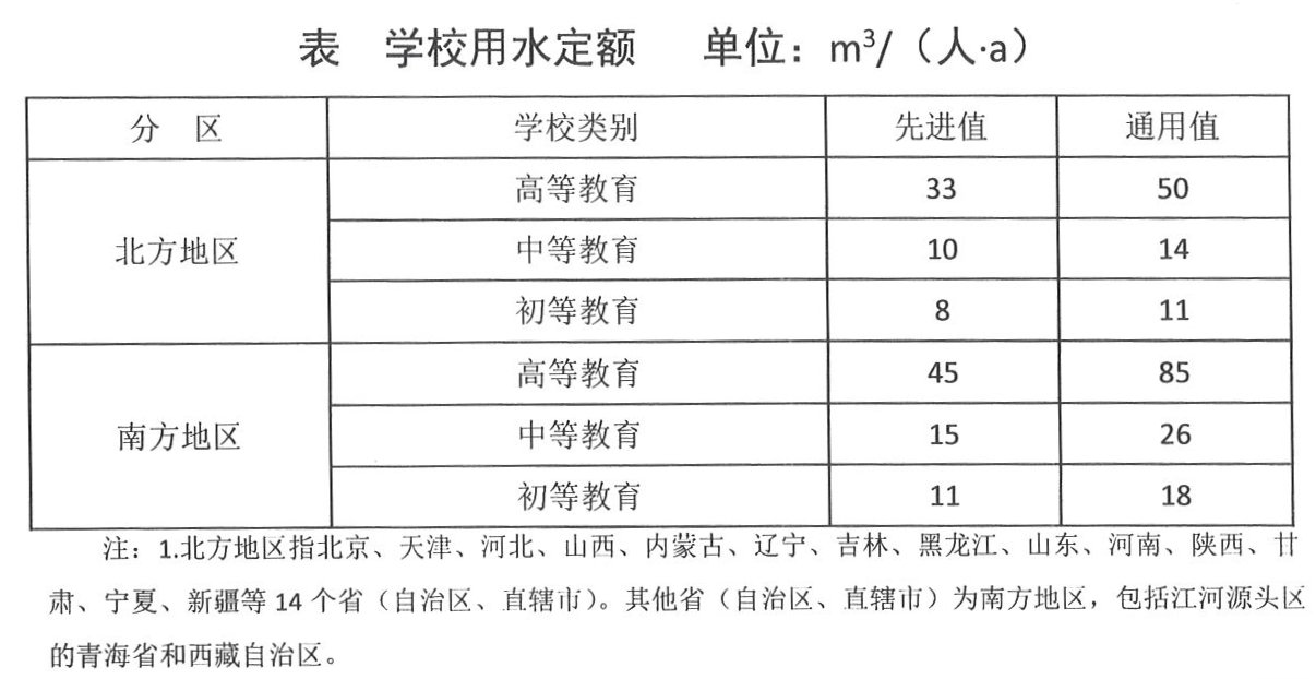 3. 学校用水定额是指在一定时期, 不同的节约用水条件下,按学校标准人数核算的人均用水量。
